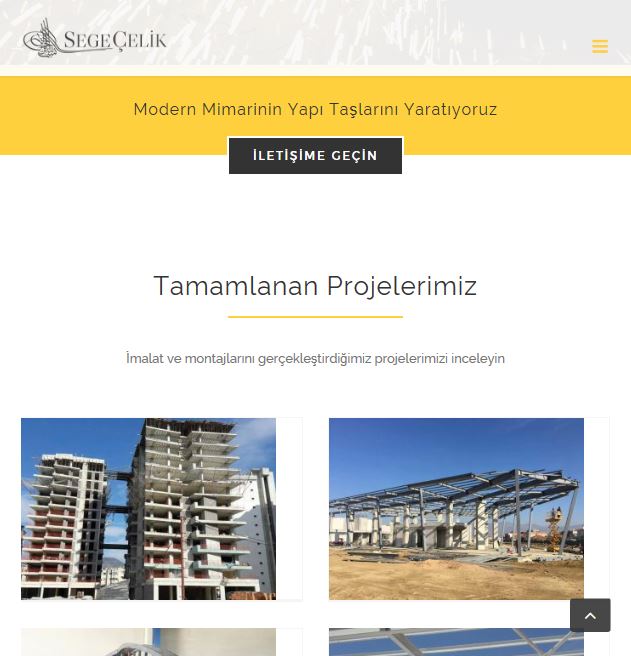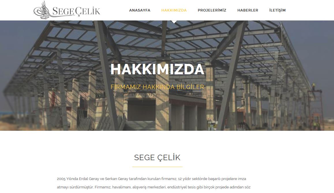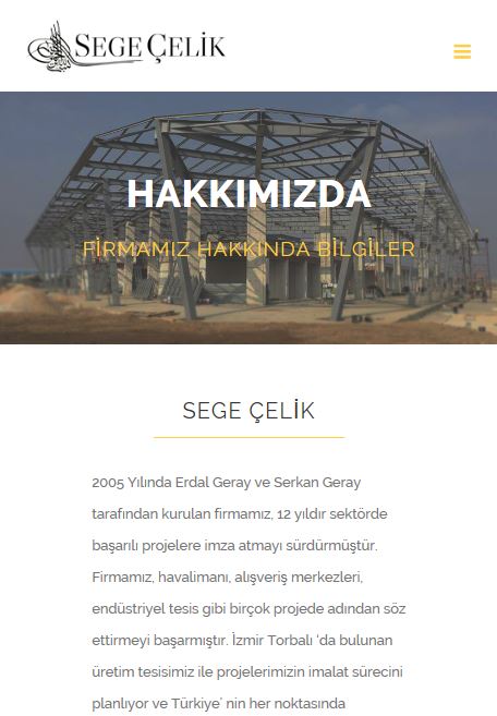 İzmir Torbalı'da fabrikası bulunan ve çelik konstrüksiyon yapı ürünleri imalat ve montajı yapan çelik firması Segecelik.com.tr web sitesinin tasarımı için bizleri tercih etti ve %100 mobil uyumlu, türkçe yönetim panelli web tasarımı yapılarak yayına verildi. Segecelik.com.tr adresini ziyaret edebilirsiniz.- %100 responsive tasarım,