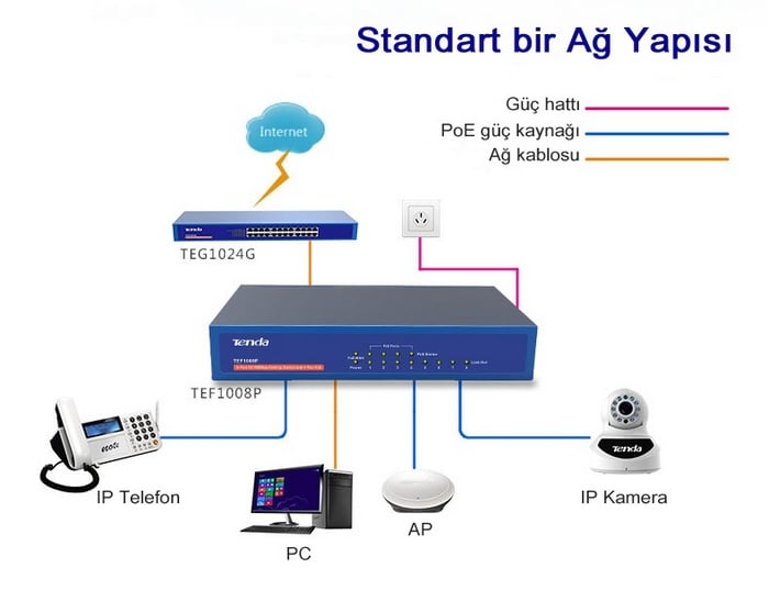 ilk yorum yapan siz olun “TENDA TEF1008P 8Port 10/100 4 Port PoE Switch”